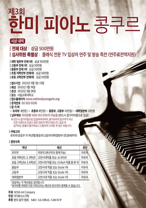 | 제4회 쇼팽애비뉴 국제 피아노 콩쿠르 (0) | 2022.03.26 |
